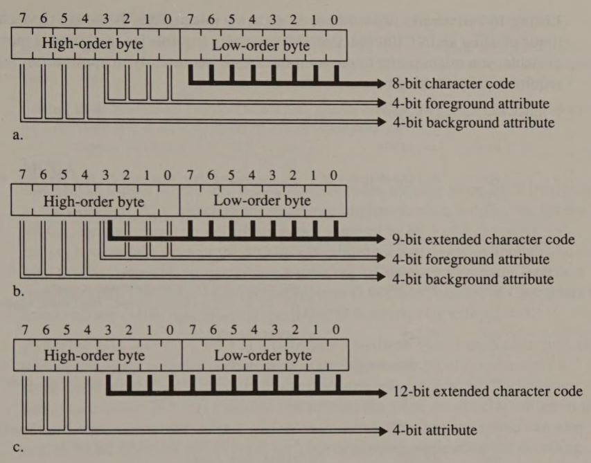 On the other hand, many computer users need to display charts, diagrams, and other graphics information in addition to alphanumeric text. Also, displaying colors on the screen is essential to many computer applications. Because the MDA can display only monochrome text, PC users who need graphics output can compromise by using the CGA, with its dot-by-dot color graphics capability but less-readable text.