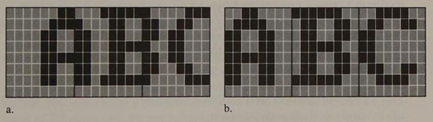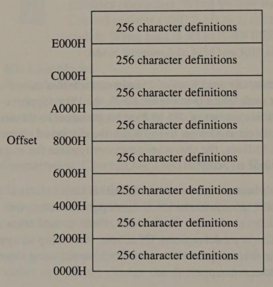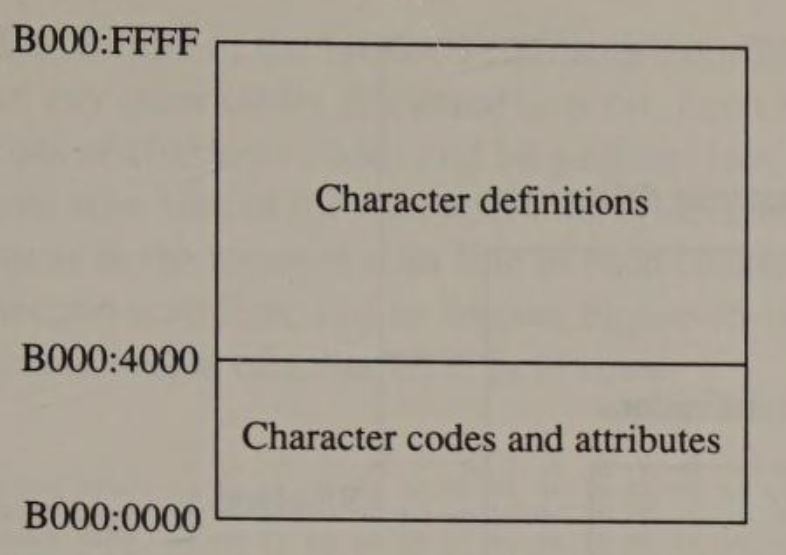 Both adapters display characters in a rectangular matrix of dots. A simple calculation shows that each character is 9 dots wide and 14 dots high on a Monochrome Display but only 8-by-8 dots on a CGA display. The MDA's higher resolution produces more crisply defined characters that are easier to read. For this reason, most PC users who need to read text prefer an MDA to a CGA.