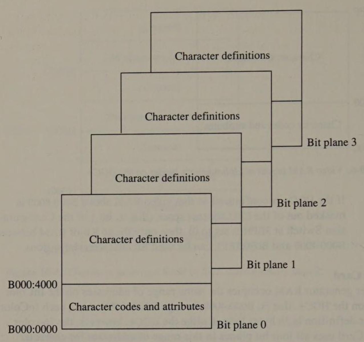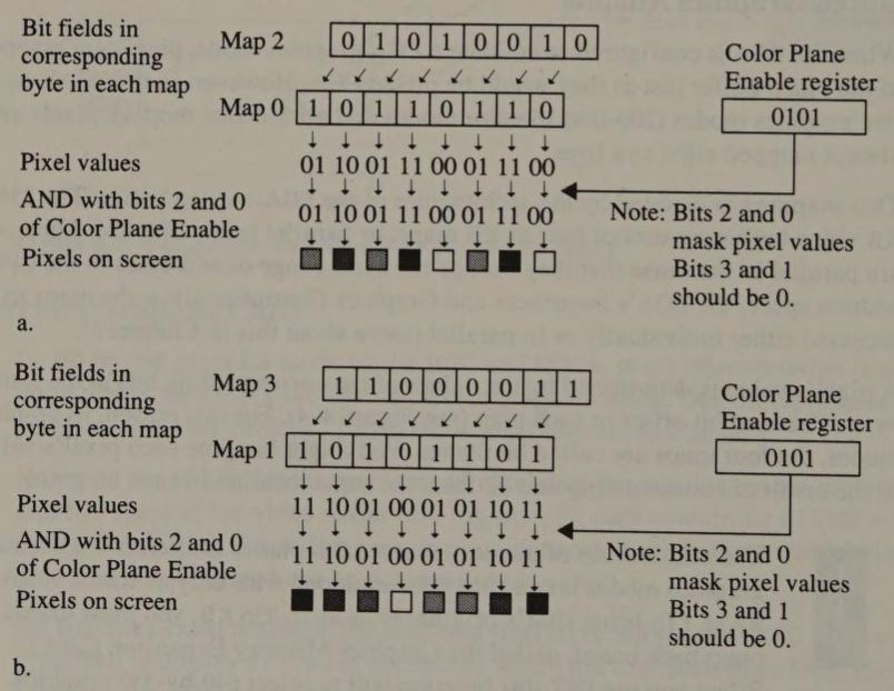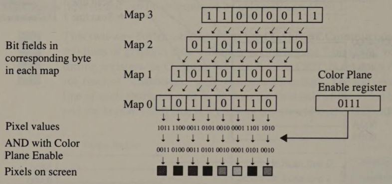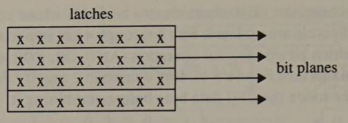 bit plane: Video RAM containing formatted graphics data. In IBM video sub-systems up to four bit planes can be addressed in parallel, with pixel values represented by the bits at corresponding locations in the bit planes.