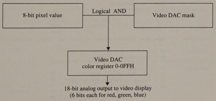 The justification for using analog video is that it can display a wider range of colors. The MCGA has a video Digital to Analog Converter (DAC) that enables the subsystem to display as many as 256 different colors at once from a palette of 262,144 (256 K or 2^18) colors. In addition to an analog color display, IBM supplies an analog monochrome display for use with the MCGA. With a monochrome monitor, the MCGA can display as many as 64 shades of gray.
